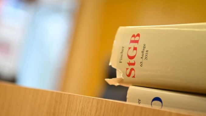 Eine Strafgesetzbuch liegt in einem Sitzungssaal. Nicolas Armer/dpa